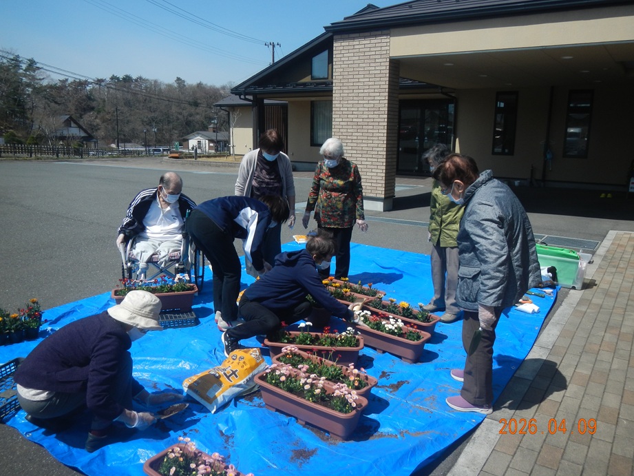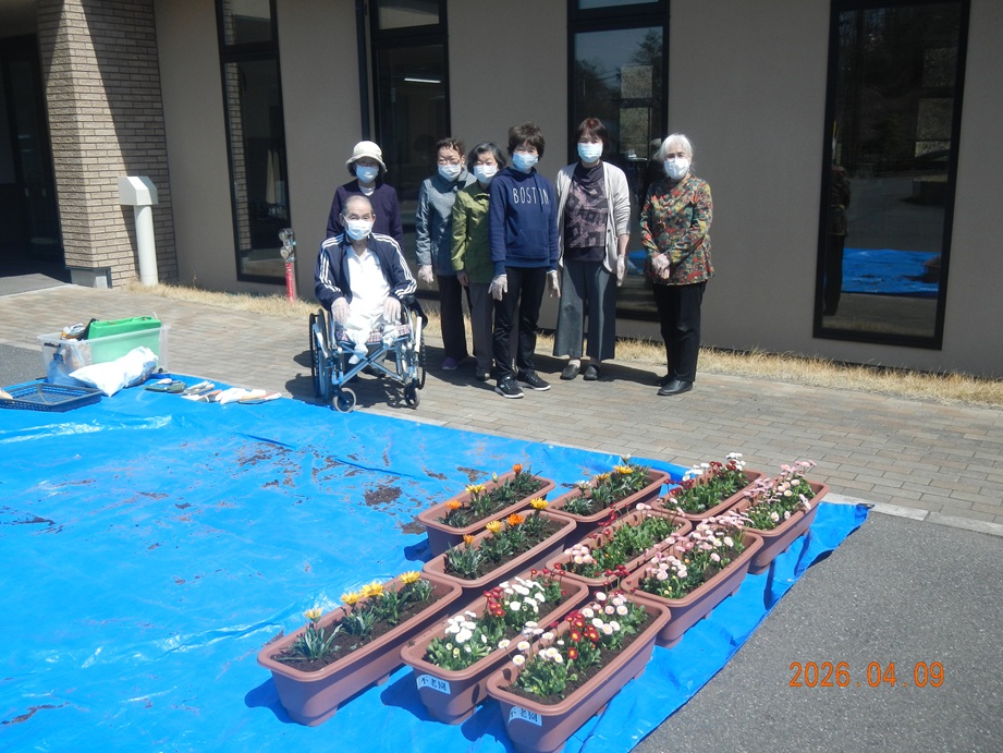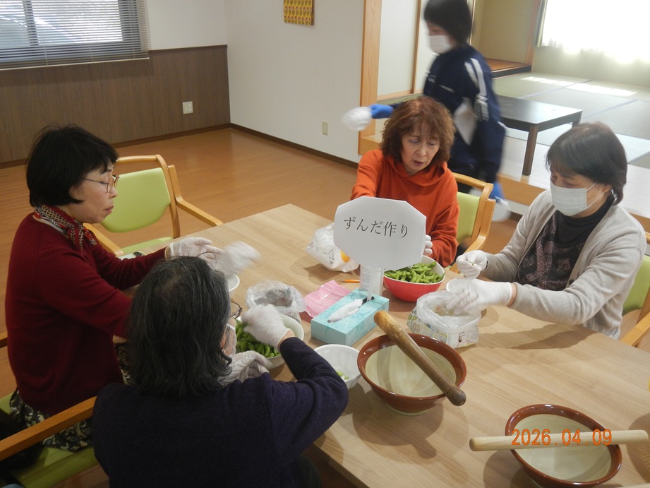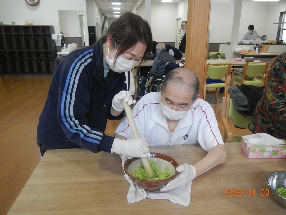 団子作りでは「ずんだ」を枝豆から潰す工程を行い、植栽は去年度とはまた異なる種類の花を植えました。